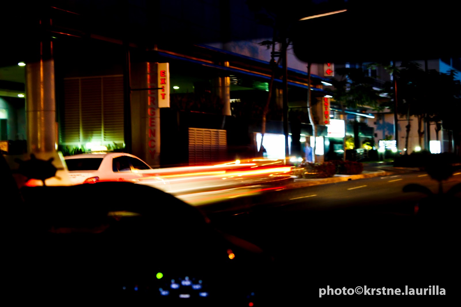 | slight car jerk hence, the wiggly trail of light |